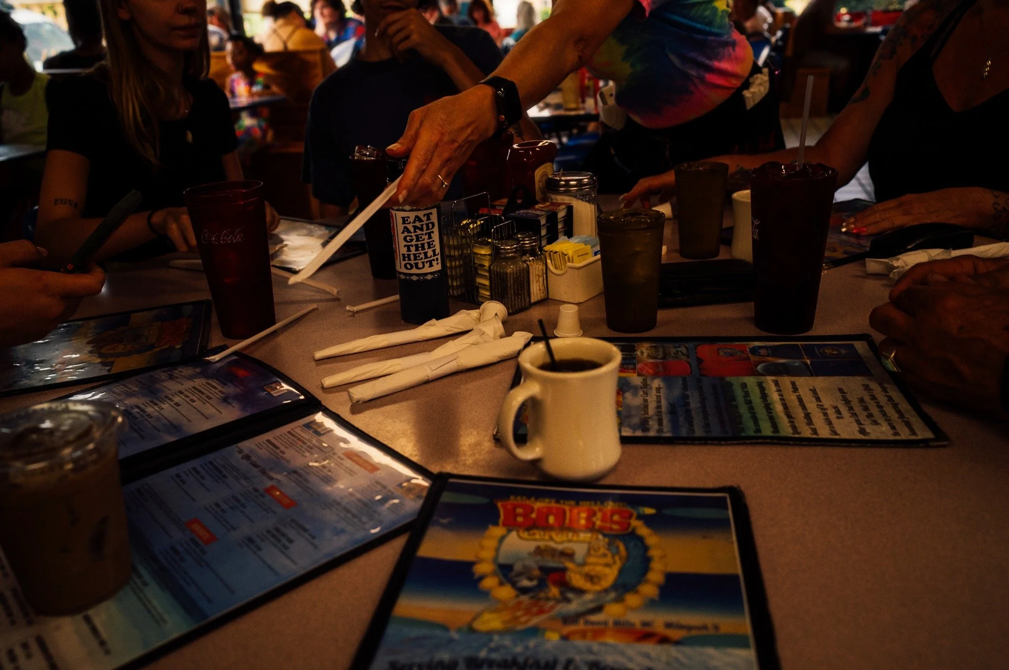 Hours later the family convened at the local pub. In typical fashion I was early and made small talk at the front welcome station as the staff told me to take whatever photos of the room I’d like. Across the rafters and into every corner of the ceiling, license plates and oddities were nailed into boards like a collage of other family passages. The Griswolds were up there someplace no doubt. My fresh shirt was fighting the humidity, and waitresses wore the smiles of tourist season as they sloshed pitchers of ice water around the table. It only took a few minutes for the first beer to land. Not much of a beer guy anymore, but you don’t note that to the table when you’re doing this sort of gathering. Quickly after the first round, a second arrived followed by a mess of fried things nobody pretended were healthy. Conversation climbed quickly. The chatter was easy, familiar, and the walls of the last several months began to loosen.